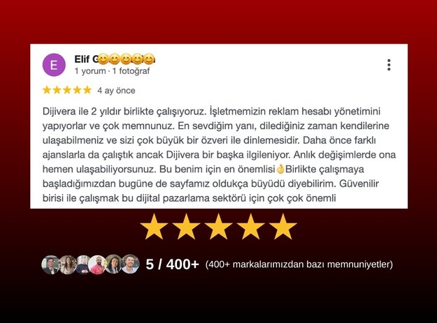 Dijivera olarak, markanızın dijital dünyadaki varlığını güçlendirmek ve hedef kitlenize etkili bir şekilde ulaşmanızı sağlamak için kapsamlı hizmetler sunuyoruz.